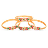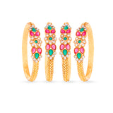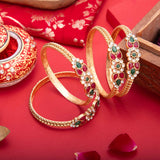 Elevate your elegance with our exquisite gold-plated bangles, a stunning blend of traditional Indian and Pakistani jewelry artistry. Adorned with dazzling kundan, ruby, and emerald stones, these bangles reflect timeless charm and vibrant heritage. Perfect for any occasion, their intricate design and luxurious finish make them a must-have accessory. These bangles capture the essence of South Asian craftsmanship, offering a radiant touch to your ensemble. Enhance your jewelry collection with these beautiful gold-plated bangles, embodying the grace and splendor of Indian and Pakistani jewelry traditions.