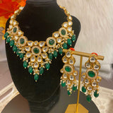 Material: Kundan, Emerald, monalisa beads, pearl, american diamonds, gold plating with back meenakari