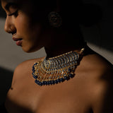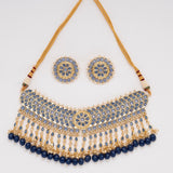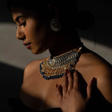 The Grey Aashvi Necklace Set is one of a kind choker with beautiful embedded crystal work. This stunner oozes opulence and elegance with beads and pearls, and is handcrafted to perfection for the perfect add to your jewelry collection.