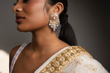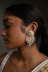 Dress up your outfits with our opulent Grey Nirvi Earrings. Handcrafted with high-quality Pachi Kundan, pearls and crystals on Gold plating, these earrings are a must-have in your jewelry box.