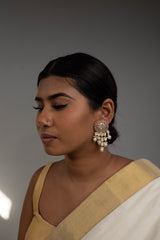 Add elegance and a unique touch to your outfits with our Pearl Rahi Earrings. Featuring a Hand-Crafted Pachi Kundan stud and drop pearls, and pearls on Gold plating, these earrings are a must-have in your jewelry box.