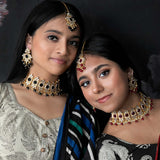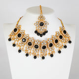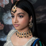 A mesmerizing combination of Black Stones with Kundan, the Black Amrita Necklace Set showcases handcrafted kundan beads in premium quality gold plating. The set consists of a Choker, which can be worn as a necklace too, Earring and Maang Tikka.