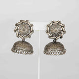 Our charming Rangeela jhumka feature an intricate lotus design on oxidized silver. You'll be able to pair these unique jhumkas with both casual clothing and fancy outfits.