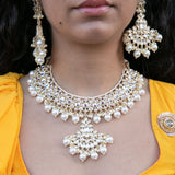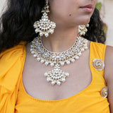 Whether you're attending a special occasion or celebrating a milestone, this necklace set is a symbol of refined beauty and cultural richness. Elevate your style and make a statement with this enchanting Traditional White Gold Necklace Set with Kundan and revel in the opulence of tradition.