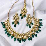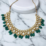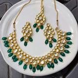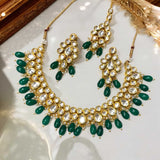 Elevate your jewelry collection with this exquisite Emerald Kundan Necklace Set, featuring high-quality Kundan with intricate detailing and traditional back Meenakari work. Designed for weddings and festive occasions, this Indian bridal jewelry set includes a stunning necklace, matching earrings, and a maang tikka for a complete regal look. The vibrant emerald green stones add a touch of royalty, making it perfect for brides, bridesmaids, and special celebrations. Handcrafted to perfection, this Kundan necklace set blends heritage craftsmanship with modern elegance. Ideal for weddings, receptions, and cultural events, this timeless piece enhances any ethnic or bridal outfit beautifully.
