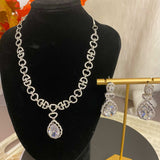 Introducing the Stuti CZ White Necklace Set, a perfect blend of elegance and modern sophistication. This stunning set features a pendant-style necklace with intricate cubic zirconia work that captures light beautifully, creating a dazzling effect. The highlight of this piece is the pristine white stone, which adds a touch of purity and timeless grace to the design. Whether you're dressing up for a wedding, a festive celebration, or a special occasion, this necklace set is sure to enhance your look with its refined charm. Complete with matching earrings, the Stuti CZ White Necklace Set is an essential addition to your jewelry collection, ideal for those who love a blend of classic and contemporary style.