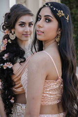 You'll turn heads with our stunning clear Zoya earrings. Uniquely shaped, these showstopper earrings are hand-crafted with clear embedded gemstones, dangling pearls, kundan, and polki design.