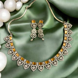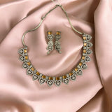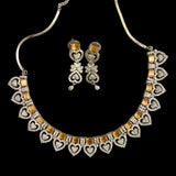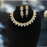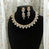 Elevate your elegance with this exquisite peach necklace set, crafted with premium American diamonds and delicate peach beads. The intricate design highlights timeless sophistication, perfect for weddings, festive occasions, or evening soirees. The shimmering diamonds beautifully complement the soft peach hues, creating a harmonious blend of sparkle and grace. This set comes with matching earrings, making it a complete accessory for a polished look. Designed for comfort and durability, this high-quality jewelry ensures you shine effortlessly. Add a touch of charm to your collection with this American diamond peach necklace set, a must-have for every modern woman.