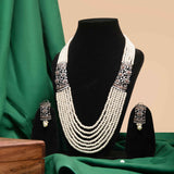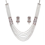 Elevate your style with our Pearl Mahima CZ Long Necklace Set with CZ Flowers—a captivating blend of traditional Indian elegance and contemporary sophistication. This exquisite Indian jewelry set is a homage to the rich heritage of Indian craftsmanship, featuring a gracefully designed long necklace adorned with regal maroon beads and intricate CZ flowers. The necklace drapes with regal charm, making it a perfect accompaniment to traditional Indian jewelry ensembles such as sarees or lehengas. Complementing the necklace are matching earrings that mirror the floral motif, adding a touch of refinement to your overall look. Meticulously crafted, this ensemble seamlessly fuses cultural richness with modern allure. Whether you're attending a wedding or a festive celebration, our pearl Long Necklace Set with CZ Flowers is a statement piece that captures the essence of tradition while embracing contemporary style—a symbol of enduring grace and sophistication in every detail.