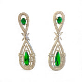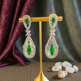 Design: Elegant long dangle earrings featuring a sparkling CZ floral motif with a teardrop emerald stone for added sophistication