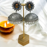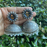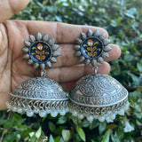 Elevate your ethnic look with this handcrafted oxidized jhumka featuring intricate meenakari detailing and delicate pearl accents. The timeless silver-tone finish adds a vintage charm, while the colorful enamel work brings a vibrant touch. Perfect for weddings, festivals, or boho-chic everyday wear, these Indian jhumka earrings blend tradition and style effortlessly. Lightweight yet eye-catching, they pair beautifully with sarees, lehengas, and Indo-western outfits. A must-have for lovers of South Asian jewelry, oxidized earrings, and artisanal craftsmanship. Shop these oxidized meenakari jhumkas with pearls for a bold, elegant statement.