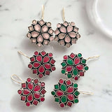 Elevate your style with our exquisite oxidized ruby stone earrings, a perfect fusion of tradition and elegance. Crafted with intricate detailing, these earrings feature a high-quality oxidized silver finish adorned with rich ruby stones for a regal touch. Lightweight yet durable, they add vintage charm to any outfit—be it casual, festive, or bridal. Ideal for Indian jewelry lovers, these statement earrings enhance your look at weddings, parties, and special occasions. Pair them with ethnic or fusion wear for a bold, timeless appeal. Shop now for oxidized ruby stone earrings and embrace heritage with a modern twist!