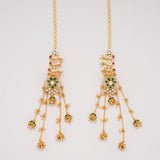 Elevate your outfit with our Multicolor Sonia Earrings. This one-of-a-kind piece is hand-crafted with high-quality Kundan and Ruby and Emerald stones on Gold plating, these earrings are sure to have a special place in your jewelry box.