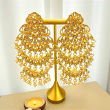 These high-quality gold plated Kundan earrings with pearls are a stunning statement accessory designed to elevate any traditional or festive look. Crafted with intricate Kundan work and layered chandbali detailing, these earrings feature shimmering mirror stones paired with delicate pearl hangings that add elegance, movement, and timeless charm. Their premium gold polish gives a rich, luxurious finish, making them perfect for weddings, parties, festivals, and bridal events. Lightweight yet grand, these earrings beautifully complement lehengas, sarees, anarkalis, and Indo-western outfits. Whether you’re a bride, bridesmaid, or styling for a special occasion, these classic Indian earrings bring sophistication and grace to your look. Ideal for South Asian jewelry lovers, this pair makes a thoughtful gift for birthdays, anniversaries, Diwali, Eid, or bridal showers. Add these exquisite gold plated Kundan earrings to your collection for a glamorous, traditional sparkle that never goes out of style.