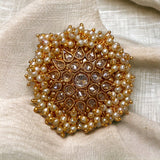 - Materials used: Cluster Pearls, Polki Stones on Gold Plating