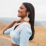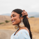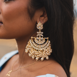 The lightweight yet high-quality Shalini Kundan Earrings feature an intricate Kundan design with pearls on Gold-Plating.
