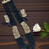 Drape yourself in elegance with our Blue Pearl Mahima CZ Long Necklace Set with CZ Flowers, a stunning creation that combines royal hues with intricate detailing. This Indian jewelry set showcases a graceful long necklace accented with blue pearls and dazzling CZ flowers, symbolizing sophistication and style. The soothing blue tones beautifully complement the gold-plated finish, making it perfect for festive occasions or wedding ceremonies. Matching floral earrings add a refined touch, completing this timeless ensemble. Every detail reflects the harmony of traditional artistry and modern design, ensuring you stand out wherever you go.