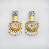 Embellish your outfit with our stunning yet lightweight mint Tara earrings that are perfect for any occasion. These earrings are handcrafted with embedded gemstones and dangling pearls with hand-painted Meenakari and High-Quality Kundan.