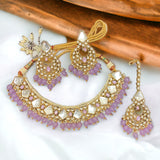 The Lavender Unnati Kundan Neckline Set is the perfect Kundan set to wear this festive season. Featuring an intricate design with Kundan, with light lavender beads, this piece is sure to elevate your outfit.
