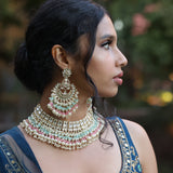 - Materials used: Kundan, pink, firozi hydro-beads, Pearls, Gold Plating,