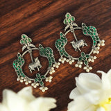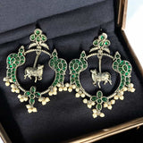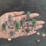 Make a bold statement with these handcrafted German Silver Chandbali Earrings, available in elegant Green and Ruby Green options. Featuring intricate oxidized detailing and a classic crescent shape, these earrings blend traditional charm with boho flair. Lightweight and comfortable, they’re perfect for festivals, weddings, or adding an ethnic touch to everyday wear. Pair them with sarees, kurtis, or Indo-western outfits for a timeless look.