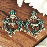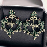 Make a bold statement with these handcrafted German Silver Chandbali Earrings, available in elegant Green and Ruby Green options. Featuring intricate oxidized detailing and a classic crescent shape, these earrings blend traditional charm with boho flair. Lightweight and comfortable, they’re perfect for festivals, weddings, or adding an ethnic touch to everyday wear. Pair them with sarees, kurtis, or Indo-western outfits for a timeless look.