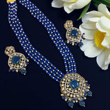 Ipsita Sapphire Kundan CZ Long Necklace Set with Pearls and Silver Foiling