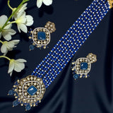 Paired with matching earrings that mirror the necklace’s regal charm, this set is perfect for weddings, festive occasions, and grand celebrations. The combination of royal blue hues, fine craftsmanship, and timeless design makes this set a standout addition to any jewelry collection.