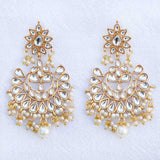 Crafted with precision, the earrings feature intricate Kundan work, showcasing the artistry of Indian jewelry. The dazzling gold plating adds a touch of luxury, elevating your ensemble to a new level of glamour. The earrings also boast lustrous pearls that add a classic charm, enhancing the overall allure of the design.