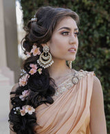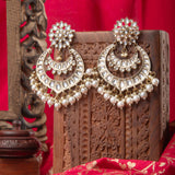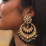 Introducing our exquisite Gold Chandbali Earrings, a perfect blend of traditional charm and modern elegance. Adorned with radiant Kundan stones and delicate pearls, these earrings are a true testament to the rich heritage of Indian and Pakistani jewelry. Ideal for bridesmaids and special occasions, their intricate design and shimmering gold finish will elevate any outfit. Embrace the timeless beauty and sophistication of our Gold Chandbali Earrings, a must-have addition to your jewelry collection. Perfect for weddings, festivals, and celebrations, these earrings capture the essence of South Asian artistry