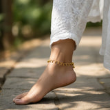 Elevate your traditional look with these beautifully handcrafted gold-plated payals, designed to add timeless charm to every step. This elegant anklet set features delicate paisley-style danglers that create a graceful, rhythmic movement—perfect for weddings, festivals, and everyday ethnic wear. Made with premium-quality gold plating, these Indian anklets offer a rich shine and durable finish, making them a stunning accessory for brides, bridesmaids, and anyone who loves classic foot jewelry. The lightweight design ensures all-day comfort, while the meticulous detailing reflects the artistry of traditional Indian craftsmanship. Style them with lehengas, sarees, salwar suits, or fusion outfits to complete your festive or bridal look. These payals also make a thoughtful gift for birthdays, anniversaries, bridal showers, and special occasions. Add this timeless pair of Indian gold-plated payals to your jewelry collection for an elegant touch that never goes out of style.