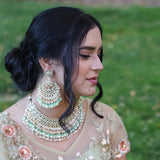Indulge in the timeless elegance of our Mona Mint Peach Kundan Necklace Set, a radiant symphony of tradition and modernity. Crafted with precision, this set exudes opulence with high-quality Kundan, delicate pearls, and enchanting mint and pink beads. Perfect for grand occasions or intimate gatherings, our Indian-Pakistani fusion jewelry adds a touch of regal charm to any ensemble. Elevate your style effortlessly with this exquisite pairing of necklace and earrings, a testament to the artistry of Kundan jewelry. Embrace the allure of South Asian heritage with this mesmerizing creation.