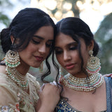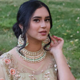 - Materials used: Kundan, Mint, Peach hydro-beads, Pearls, Gold Plating,
